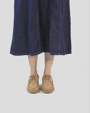 Damen-Bootsschuhe. Velourleder Camel. Schnürverschluss. Lederinnenfutter. Anatomisch herausnehmbare Innensohle. Flexible und robuste Sohle aus Naturkautschuk. Absatzhöhe: 4 cm. 100% Hergestellt in Spanien.